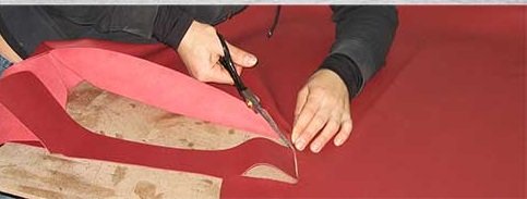 Если у вас нет подходящей швейной машинки, можно пойти немного иным путём и склеить детали непосредственно на поверхности панели. Но в этом случае следует действовать особенно аккуратно: такой подход опасен появлением зазоров в местах стыков. Если вам не удастся как следует растянуть и уложить материал, он будет расходиться и отклеиваться от торпеды.