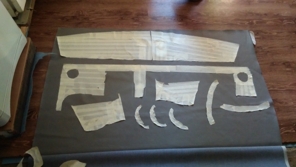 При сильных повреждениях корпуса, можно зашпаклевать панель с помощью специального состава по пластику. После того как поверхность полностью просохнет, можно начинать изготовление лекала и перетяжку детали.
