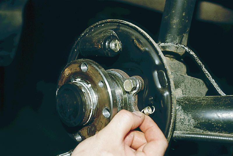 - Выкручиваются направляющие шпильки, расположенные на барабане (в случае закисания шпилек возможно снятие барабана вместе со ступицей после её откручивания).