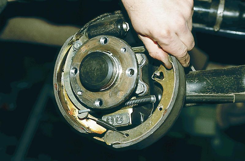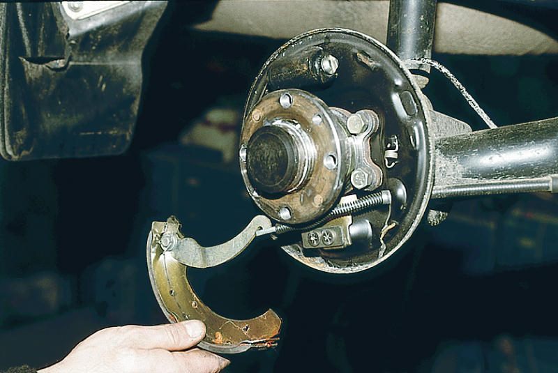 Замена задних колодок на автомобилях серии ВАЗ-2110 и их производных несколько сложнее, поскольку они имеют барабанный тип. Работы по замене осуществляются следующим образом: