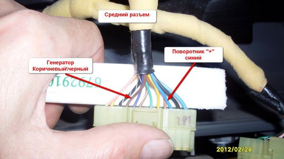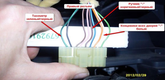 - Из водительской двери выступает жгут проводов, расположенный за блоком предохранителей. Центральный замок подключается именно к нему.