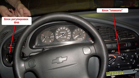 - Расположение саморезов, на которых крепится накладка блока управления фарами