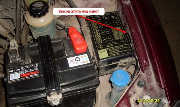 - В подкапотном пространстве размещается сирена, датчик температуры и концевик капота. В багажнике крепится концевик багажника.