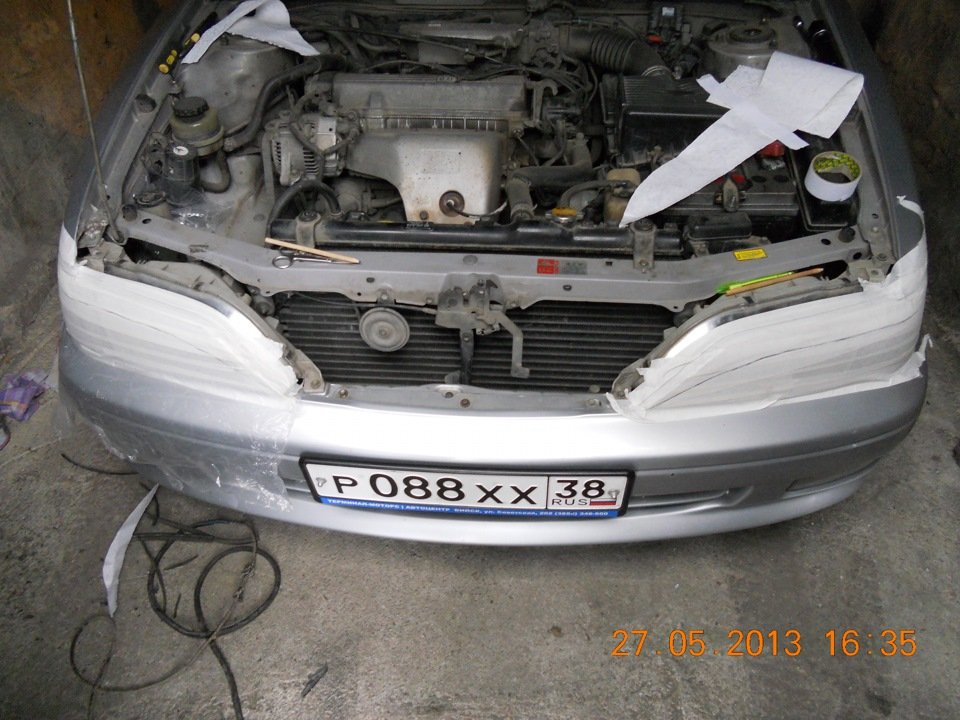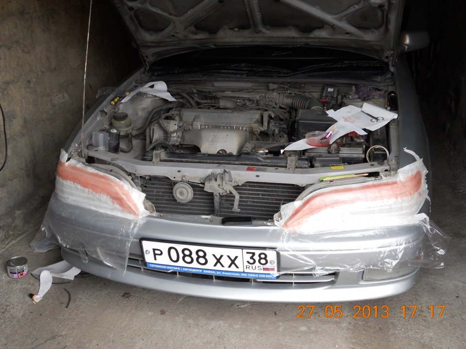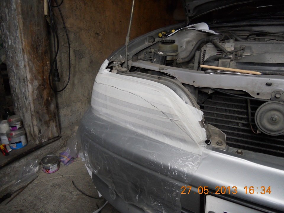 - Готовимся — обклеиваем фары малярным скотчем