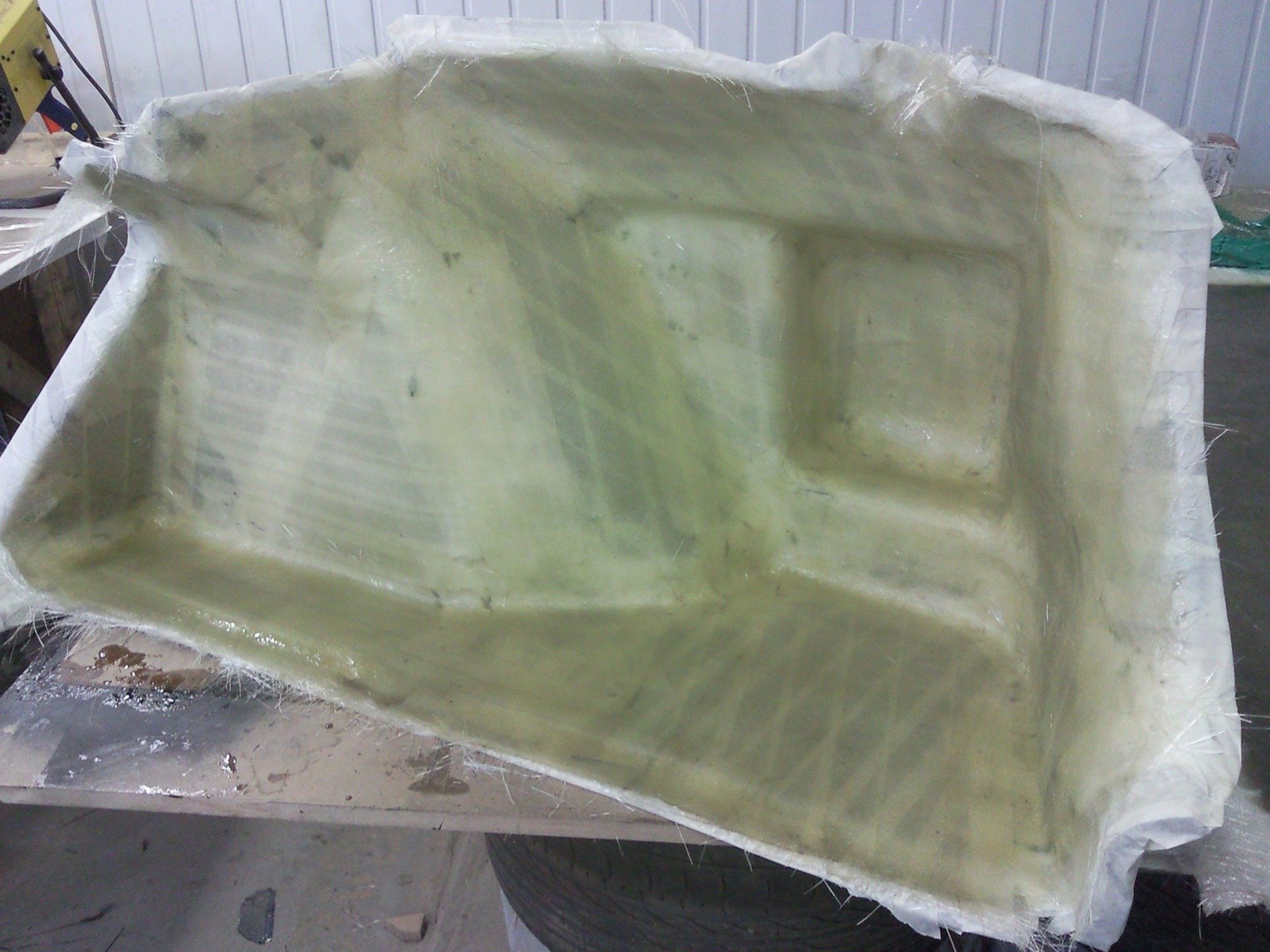 - Придётся наклеить около 5 слоёв, чтобы толщина листа стеклоткани в итоге равнялась 10 мм.