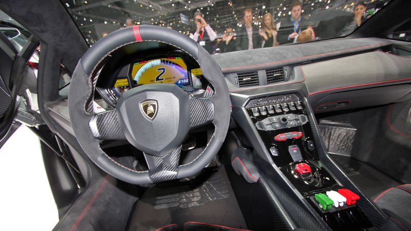 - Салон Lamborghini Veneno отделан специализированной тканью Carbonskin