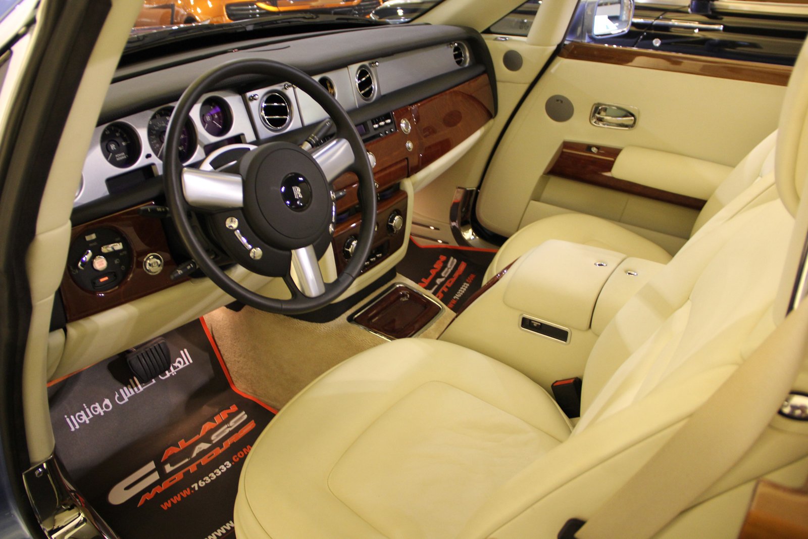 - Одна из изюминок Rolls Royce его салон, обитый дорогой кожей и дополненный накладками из орехового дерева и алюминия.